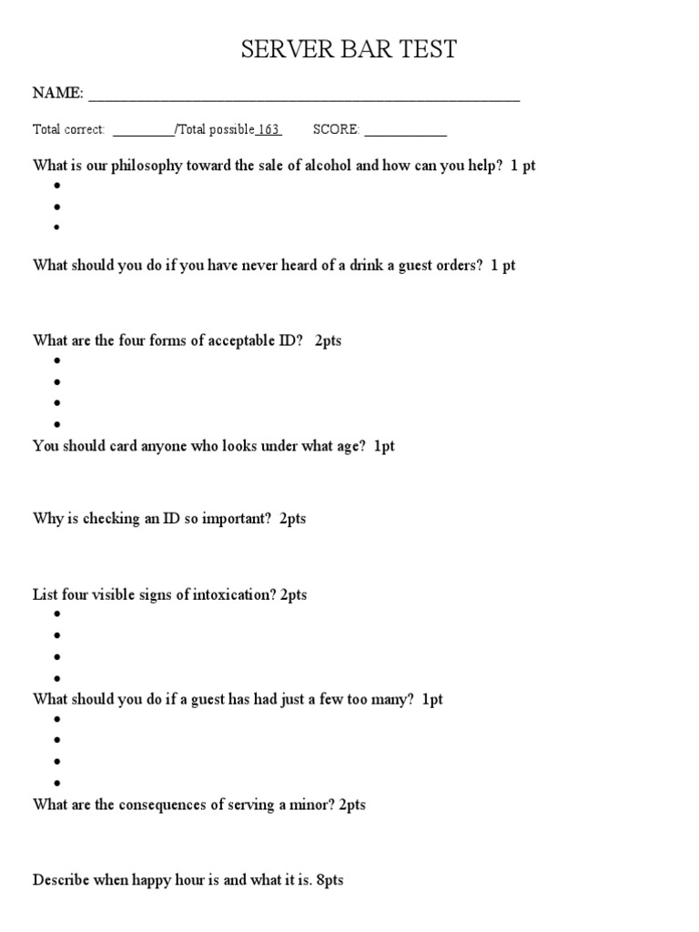 Server Menu Test Answer Key Pdf Hamburgers French Fries